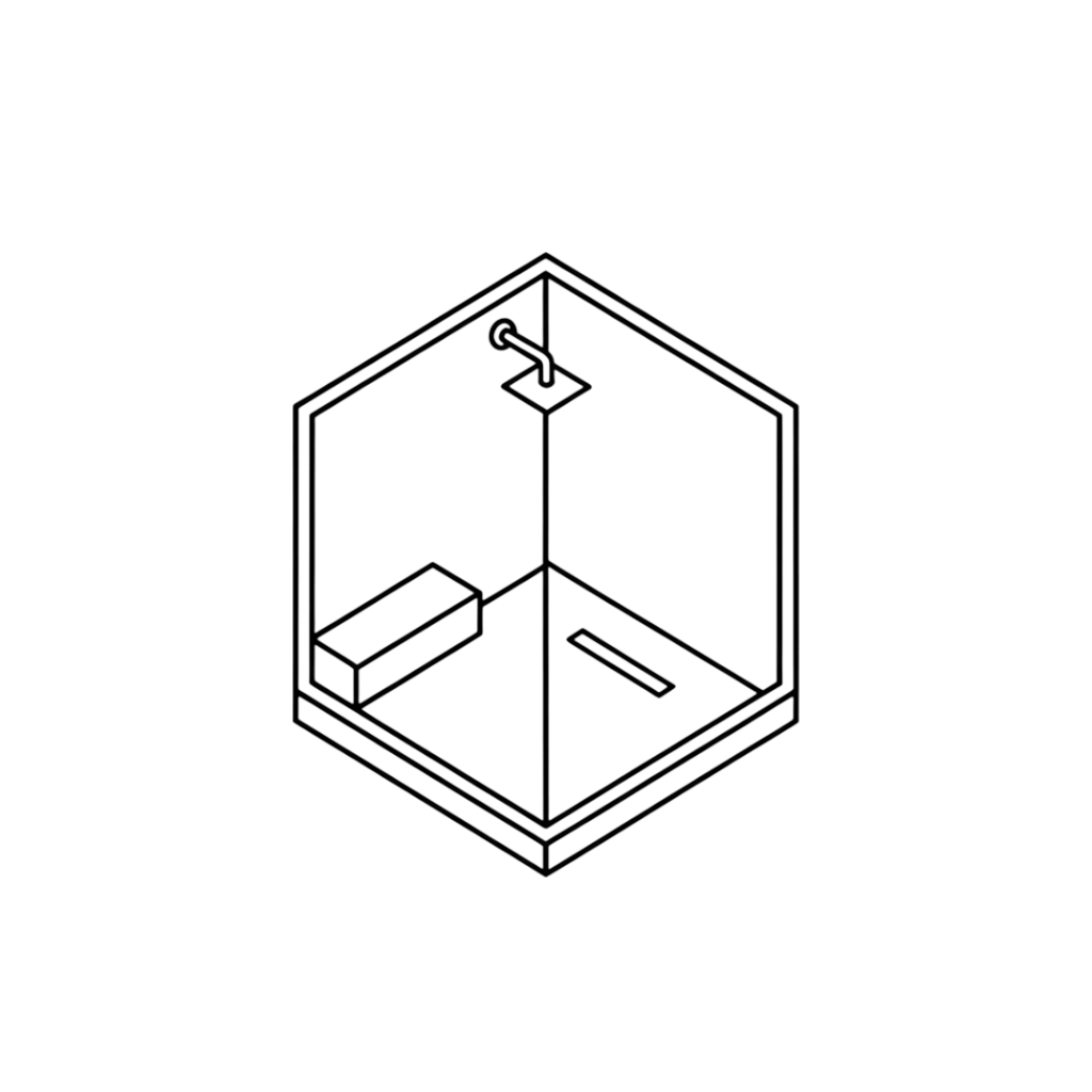- Low threshold curb (1.25" – 3”) or curbless/zero-entry options instead of having a tub or a standard curb height of 4" - 6