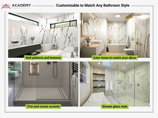This flexibility ensures your bathroom can reflect your personal style, while still benefiting from the durability and low-maintenance advantages of no-grout panels.
